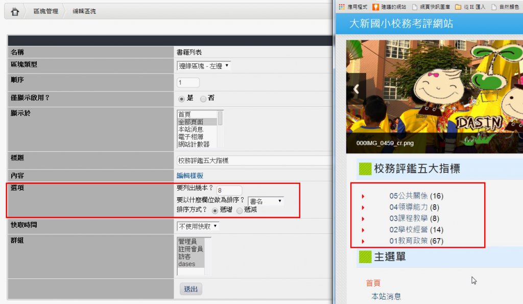 只有在主選單中按下"線上書籍"時..中央區塊才是依我在後台拖曳的順序顯示..但書藉列表依然是錯的...<如圖>