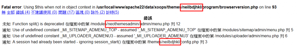 我暫時把那堆不是錯誤訊息的訊息刪掉了...