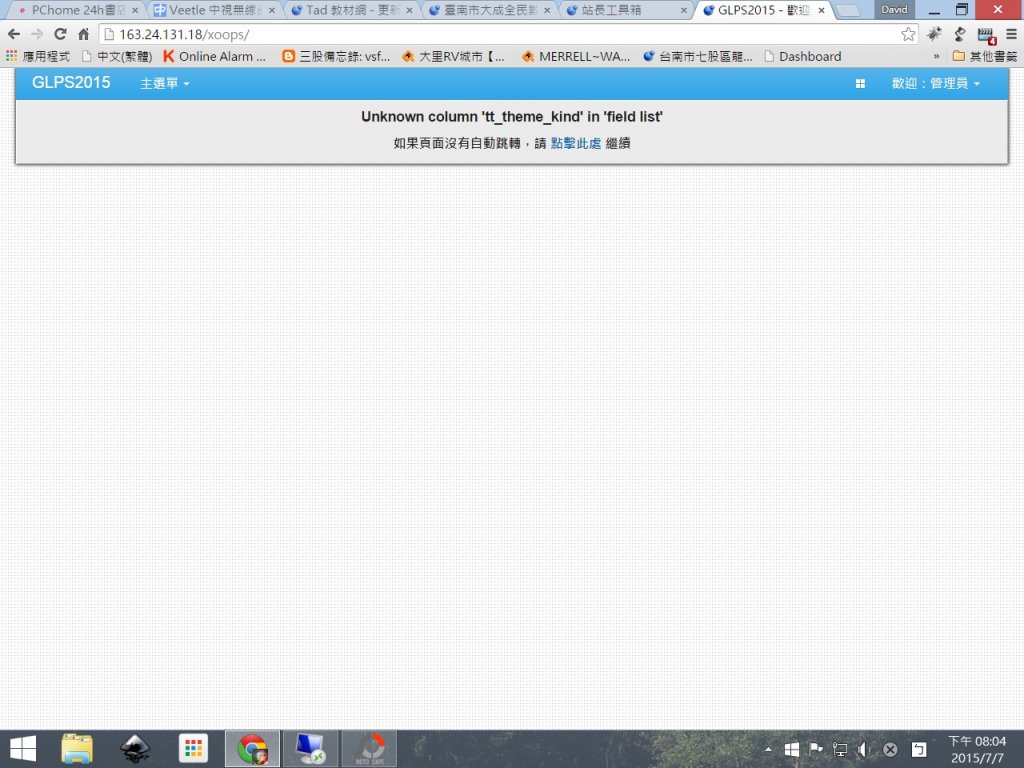 更新後首頁一直出現錯誤訊息首頁一直出現錯誤訊息