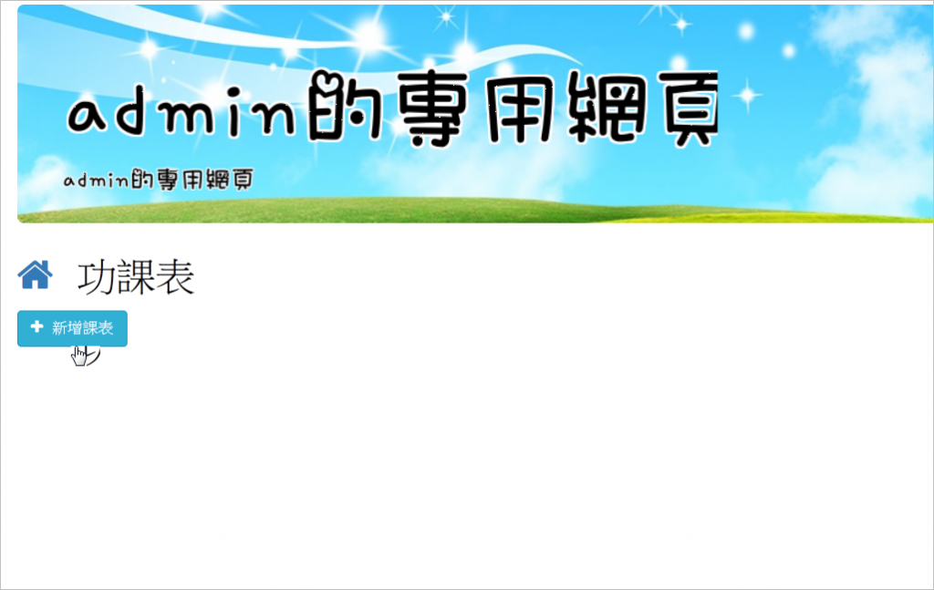 2.前台新增課表分類,再新增好課表後,回班網首頁顯示的是行事曆,無課表。網站首頁仍顯示尚未設定功課表,但我已在同一分類下新增2筆功課表,再點功課表進去,也看不到課表,只有新增課表的按鈕。