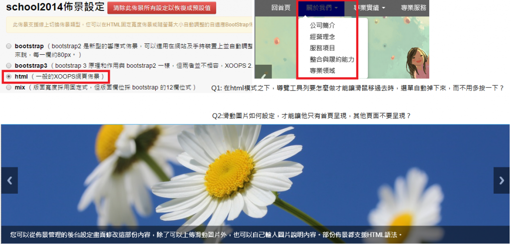 另外在滑動圖片的部分,要如何設定才能讓滑動圖片僅在首頁出現,其他頁面不要出現?煩請老師解惑,謝謝!