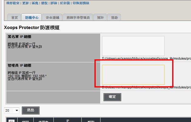 xoops protector模組,不小心輸入錯誤管理員IP,導致進不去