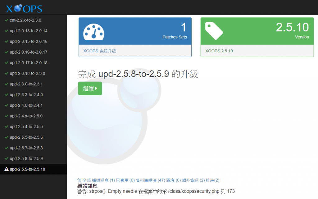 目前昇級xoops 出現