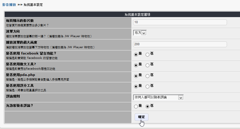 - 新增自由軟體 Projekktor 播放器選擇