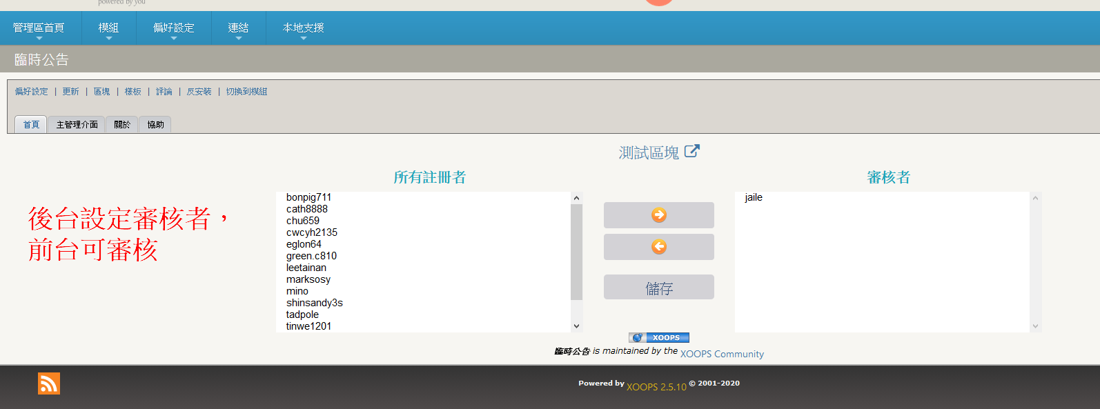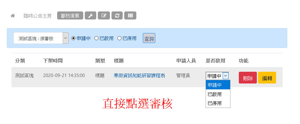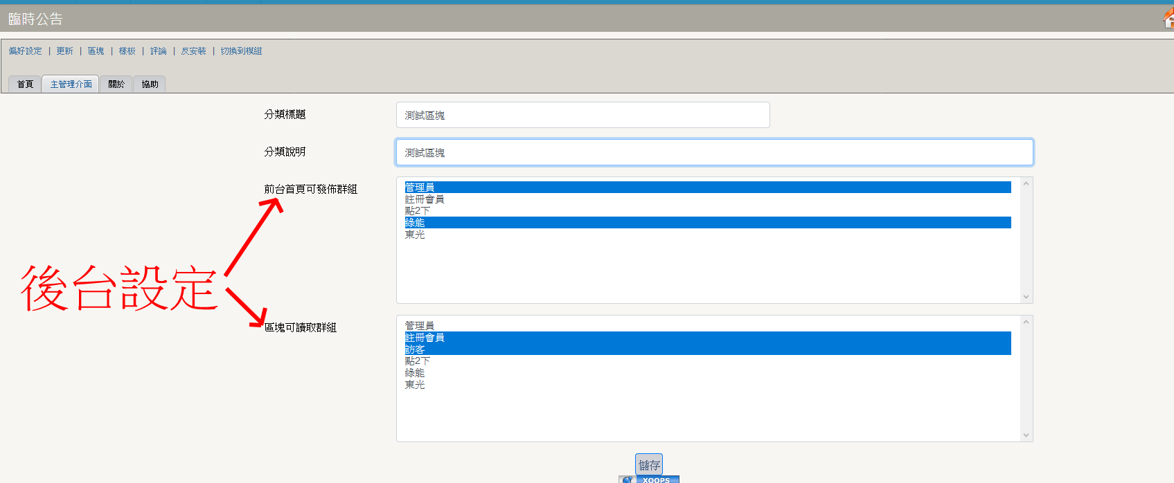 此模組的用途是提供管理者快速建立及撤銷臨時公告用。