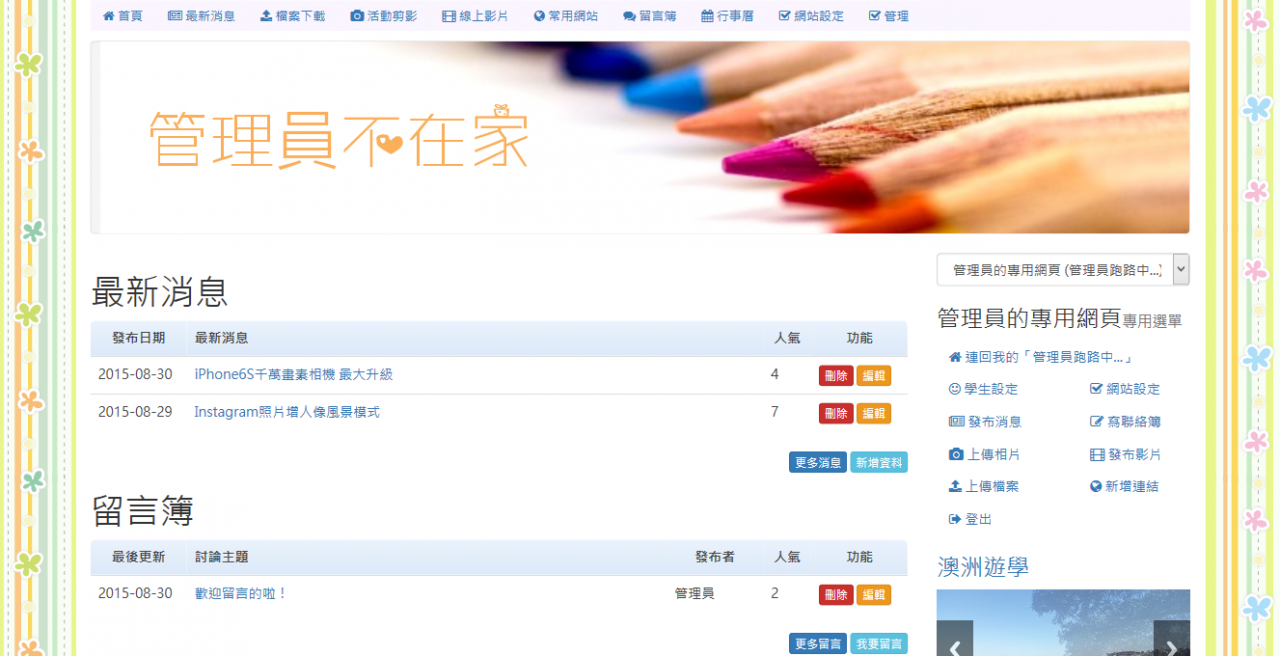 原本這模組並不在我目前開發的規劃中,因為目前正值修改Tad系列模組,把架構轉成標準的XOOPS2.5架構,因此,已經是忙得焦頭爛額的狀態。 直到幾天前有位老師在FB上詢問:「暑假研習是否會上班級網頁模組?」這時驚覺這才是老師真正需要的阿!至於架構什麼的,一般人或許不會那麼在乎吧!所 以,撥了幾天的時間,把整個多人網頁模組的基本雛型給做出來了!