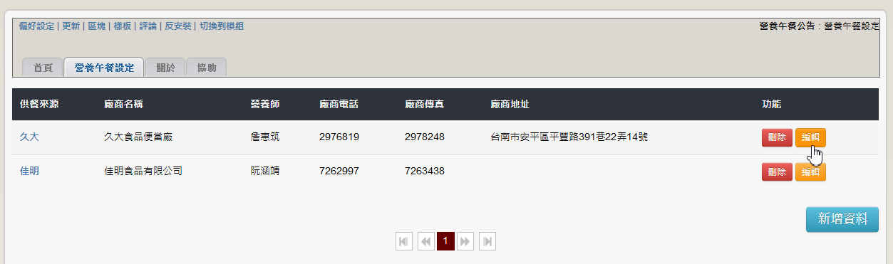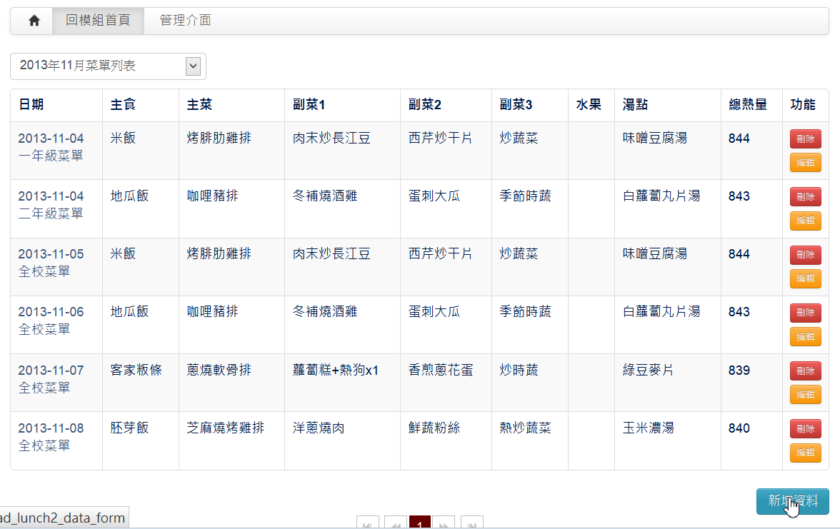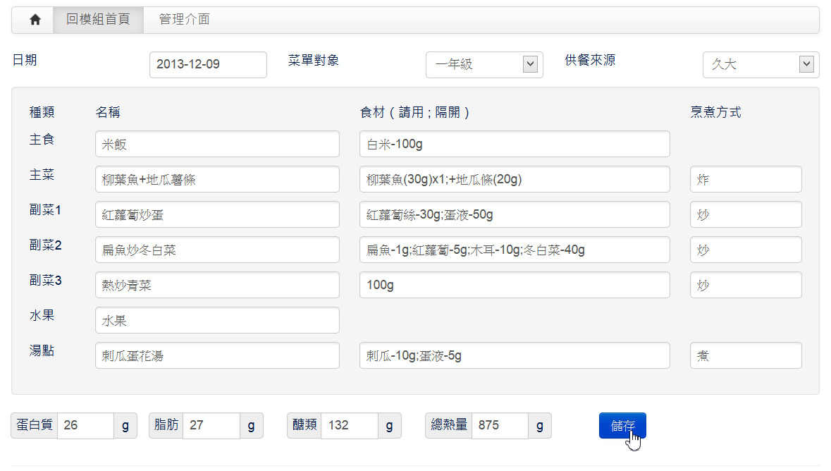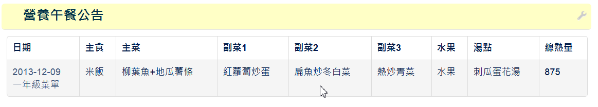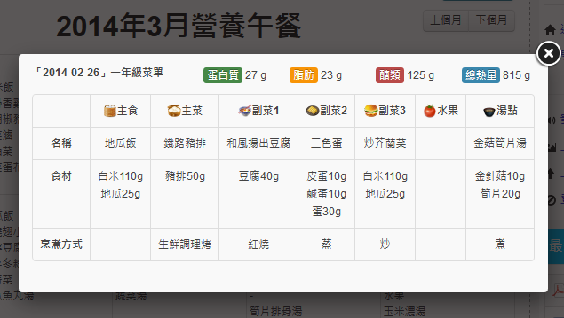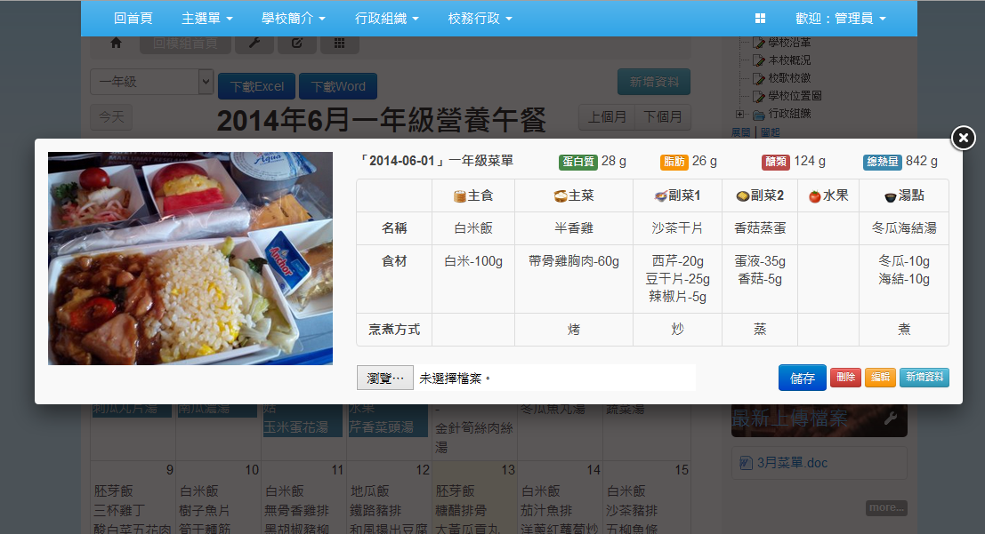 營養午餐模組是很多學校都有需求的模組,此模組以最精簡的資料庫結構提供長官們要求要顯示的各種營養午餐資訊,例如菜色、食材、烹煮方式、營養成份...等。並提供批次匯入以節省輸入時間。