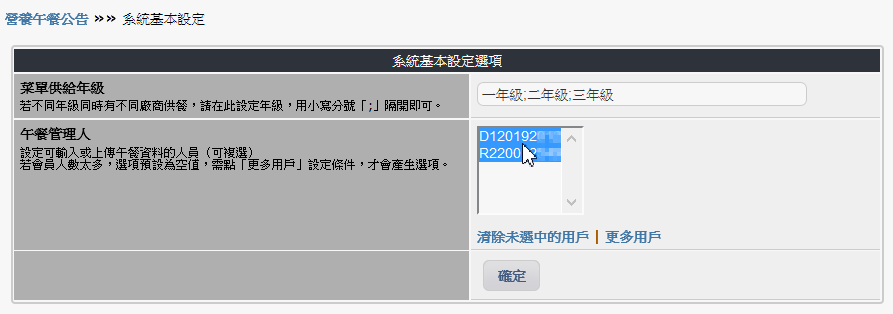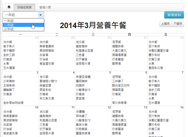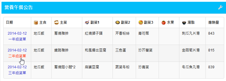 - 支援各年級有不同菜單