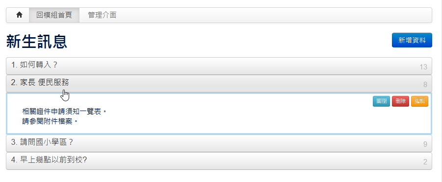 由於釋出模組時,有些問題會一再被問到,因此,很需要一個FAQ模組來整理一下常見問題,然而,目前XOOPS現有的FAQ模組中,介面稍嫌複雜了點,因此,做了一個算是小巧精緻可以直覺操作的FAQ模組來給自己用用~