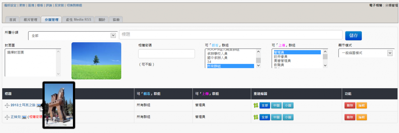 Tad Gallery 是一套操作容易且功能豐富的電子相簿模組,內建相當多的上傳及顯示特效功能,此外,也是來整理相片的利器喔(其實一開始的出發點就是要拿來整理照片用的)。