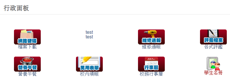 本模組配合輕鬆架中的 -- 佈景管理 -- 選單設定,預設顯示呈現校務行政選單類別。