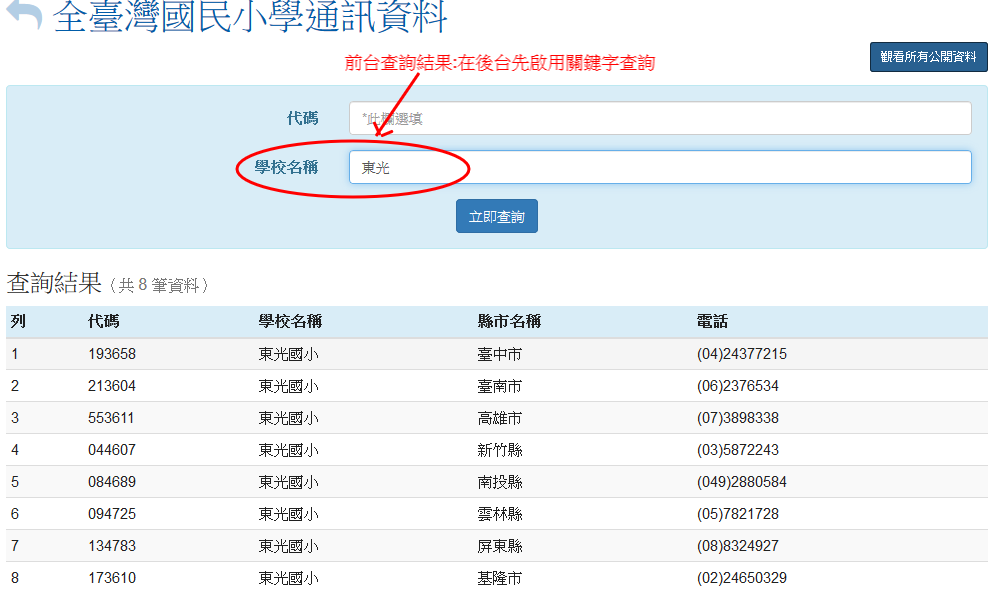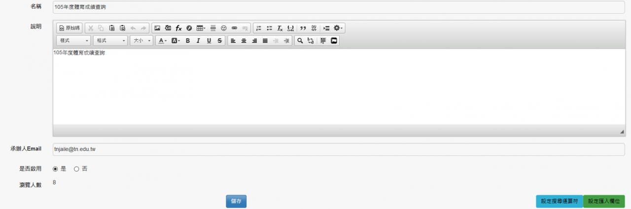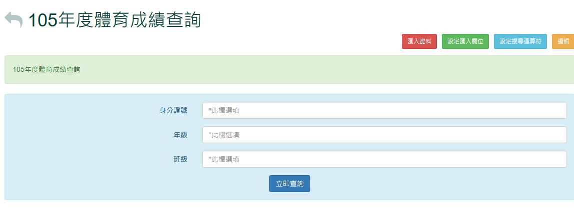 此模組在提供管理者匯入EXCEL檔,一般使用者透過填寫資料可查詢個人紀錄。用途如:成績查詢、錄取名單等。